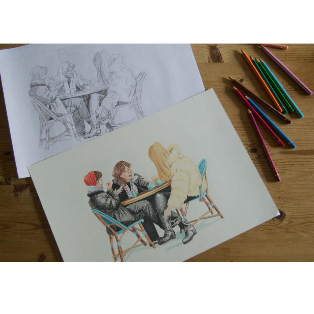 Ma pratique s’appuie sur une maîtrise des techniques traditionnelles, notamment l’aquarelle et le crayon de couleur, qui donnent à chaque illustration une présence singulière, à la fois expressive et délicate. Je collabore avec des maisons d’édition, des marques et des agences de communication, tout en menant des projets personnels ou collaboratifs qui nourrissent mon univers créatif.